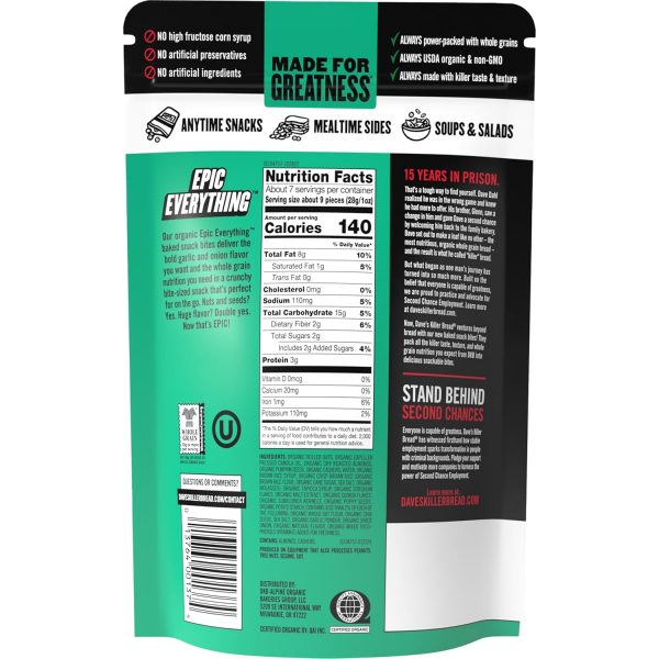 You’ll get one 7.2 oz resealable bag of Dave’s Killer Bread Epic Everything Organic Snack Bites