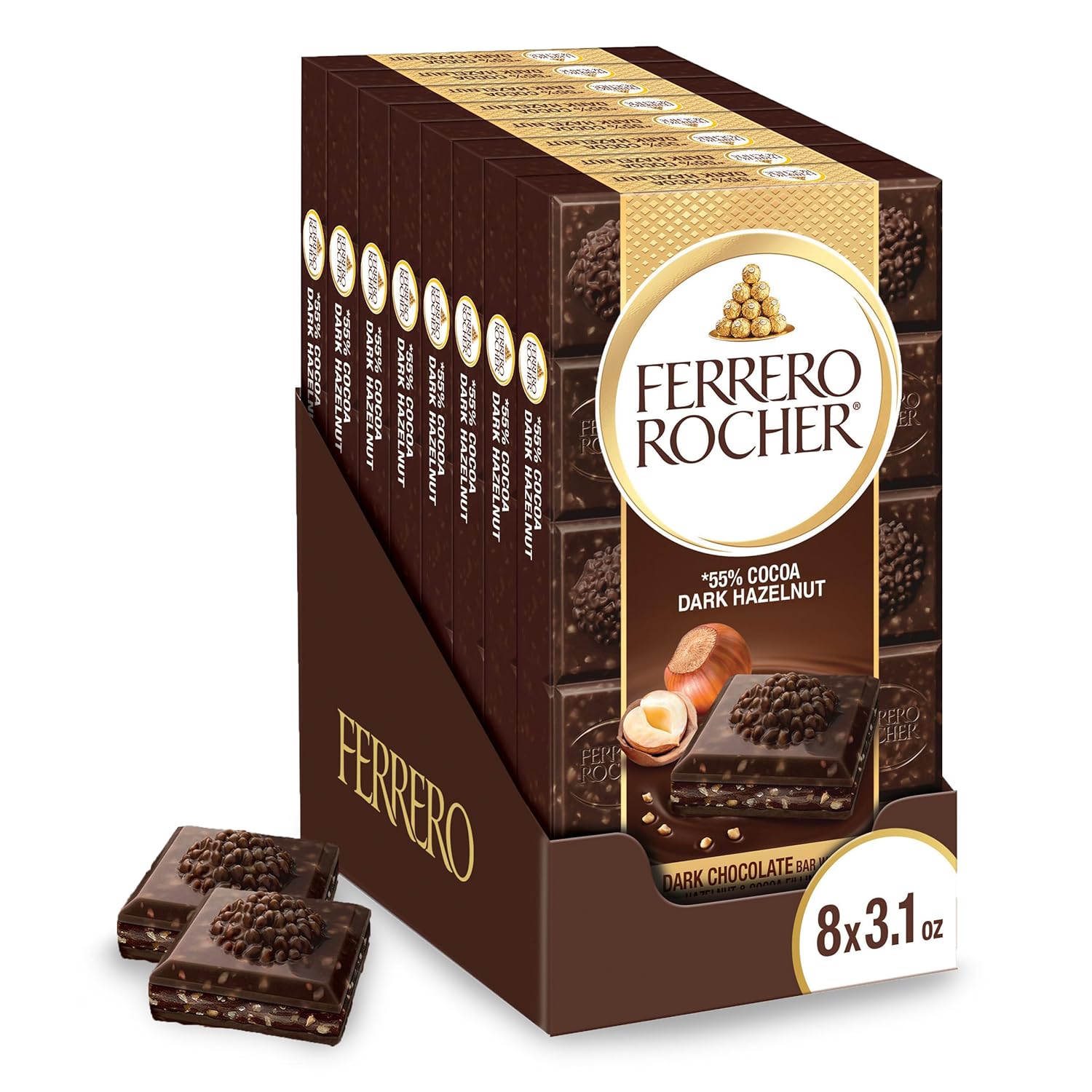 Ferrero Rocher Premium Chocolate Bars, 8 Pack, Dark Chocolate Hazelnut, 3.1 oz Each