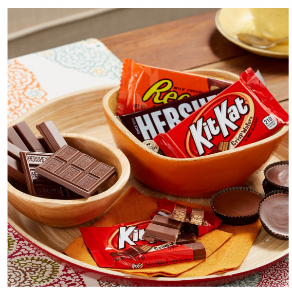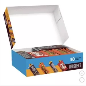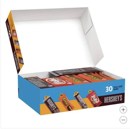 Enjoy a delicious chocolatey treat anywhere and anytime with assorted milk chocolate candy, perfect for concession stands and fundraisers. Take this bulk candy box into the office break room, pack some individually wrapped candies into your jar at home or take a box to your next sports game to celebrate the win. Hershey candy bars are also great for parties, holidays, lunches, desserts, picnics, tailgate parties and more. You really can’t go wrong when you have full-size candy bars on hand. The assorted bag of chocolate candies contains milk chocolate bars, milk chocolate with whole almonds bars, milk chocolate peanut butter cups and milk chocolate wafer candy bars, all in full- size bars. Add them to your holiday festivities, too! Stuff stockings, Easter baskets, Halloween candy bowls and Valentine’s Day gift bags.