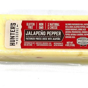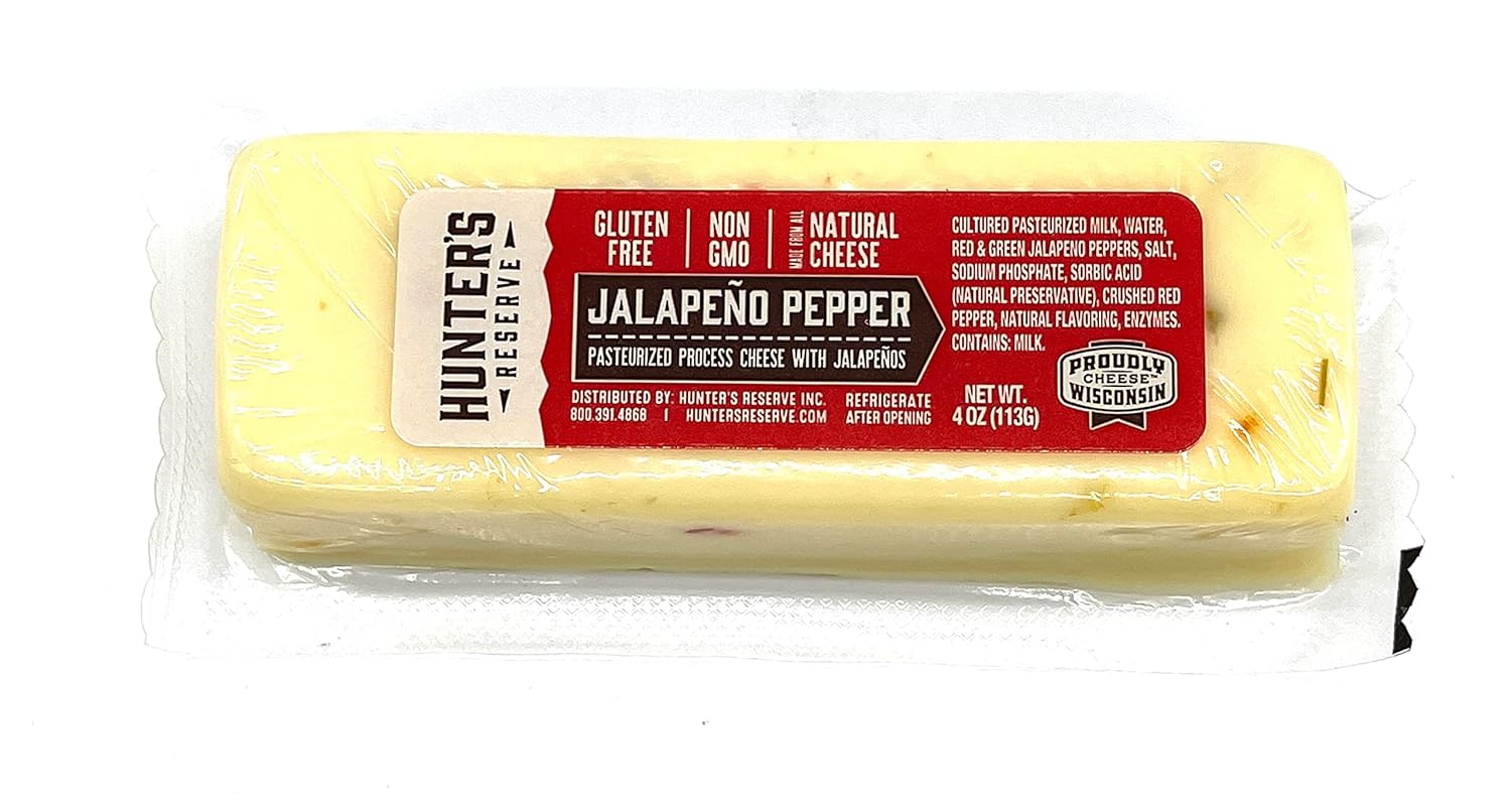 These shelf stable 4oz Cheese Bars are hickory smoked and made with all natural Wisconsin cheese! A blend of Monterey and cheddar cheeses with jalapeño peppers, these Cheese Bars are a great snack item that can also be paired with our Summer Sausage and Gluten Free crackers. Additionally, they work well in gift baskets, added to a charcuterie board or are a hit at any gathering. These Cheese Bars are a great snack item that can also be paired with other snack foods. Additionally, they work well in gift baskets, added to a charcuterie board or are a hit at any gathering.
