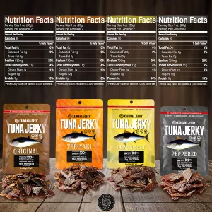 This 7-bag sampler features a delicious selection of tuna jerky and salmon jerky, combining savory, sweet, tangy, and spicy flavors in one convenient bundle.