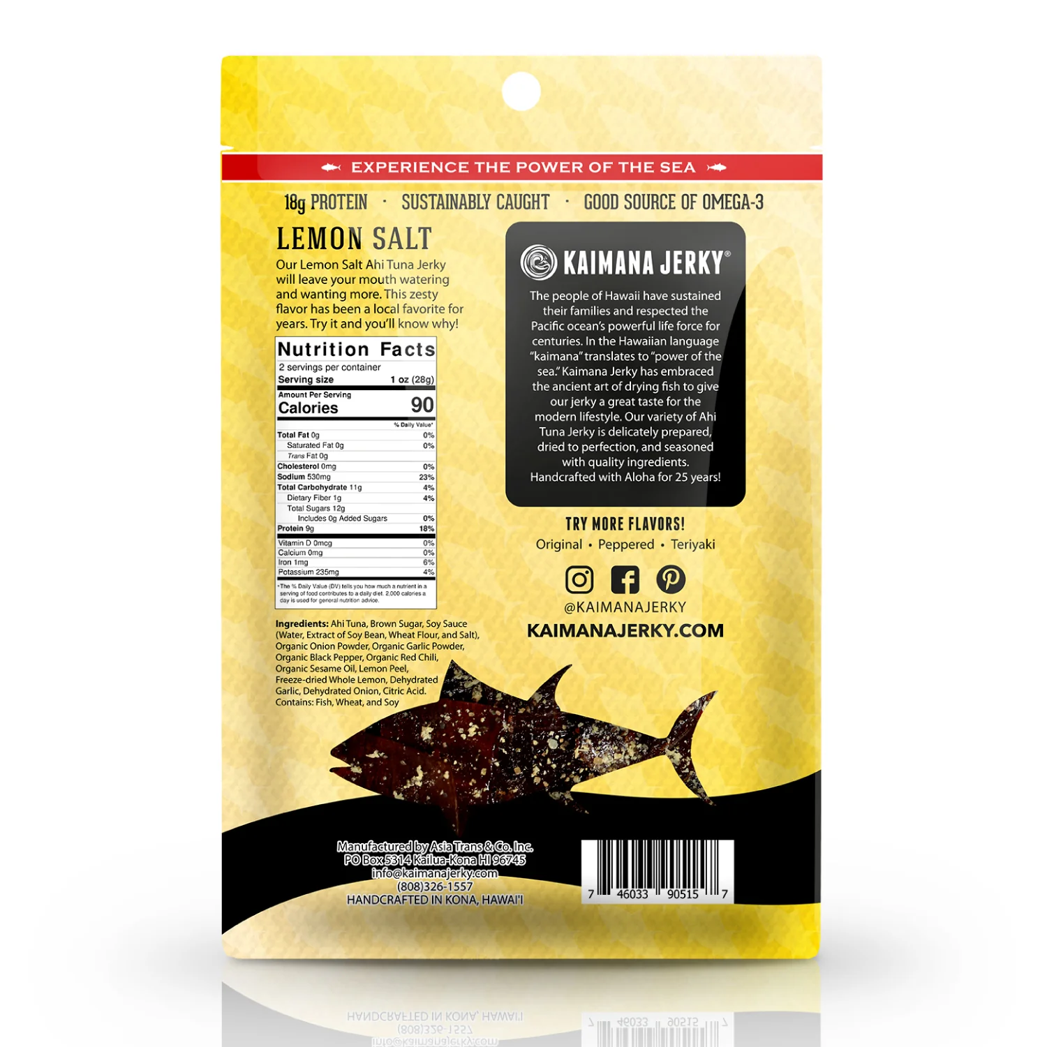 Lemon Salt Ahi Jerky: A refreshing, citrus-forward option with a clean and tangy taste.