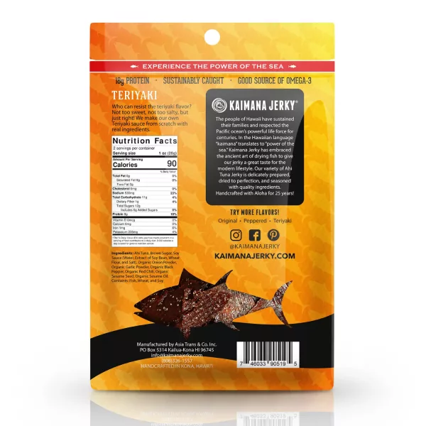 Teriyaki Ahi Jerky: Sweet and umami-rich, infused with traditional teriyaki flavor.
