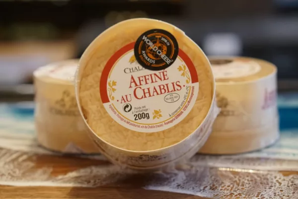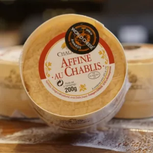 The wrinkled, brainy rind of L’Affiné au Chablis is known as a geo rind, which is formed by the yeast-like fungus geotrichum candidum.