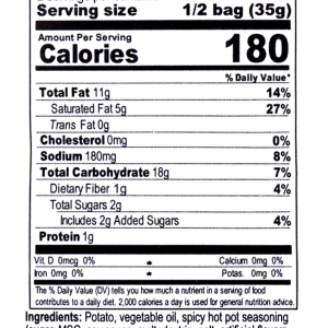 Two words: Numb & Spicy. A replication of Sichuan spicy hot pot, these chips contain a delightful rich hot pot flavor for you to enjoy with a surprising numbness on your tongue representing the power of Sichuan chilis.