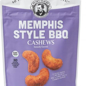 Memphis Style BBQ Cashews ingredients: cashews, sugar, peanut oil, brown sugar, salt, dehydrated vegetables (tomato, garlic, onion), honey, spices, maltodextrin, vinegar, natural flavors (including smoke), modified corn starch, corn syrup, malic acid, citric acid, xanthan gum, paprika extract.