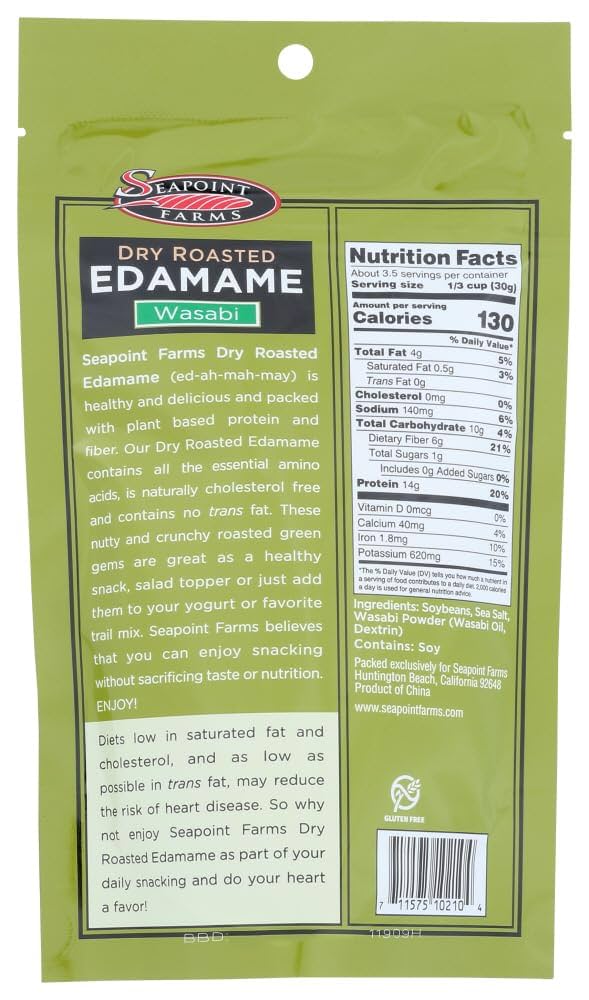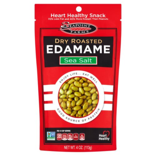 Seapoint Farms Dry Roasted Edamame (ed-ah-mah-may) is healthy and delicious and packed with plant-based protein and fibre. Our Dry Roasted Edamame contains all the essential amino acids, is naturally cholesterol-free and contains no trans fat. These nutty and crunchy roasted green gems are great as a healthy snack, salad topper or just add them to your yoghurt or favourite trail mix. Seapoint Farms believes that you can enjoy snacking without sacrificing taste or nutrition. ENJOY!