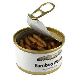 Bamboo Worms (Omphisa fuscidentalis) are a delicious high protein larvae snack, they are also high in fiber and vitamin B12. Bamboo worms are a popular snack in Thailand and are enjoyed by people nationwide. Their taste and texture is similar to corn puff snacks, however bamboo worms are healthier. Bamboo worms are the larvae of Omphisa fuscidentalis moths which feed on flowering bamboo trees. They are collected from farmed bamboo trees during the end of the rain season.