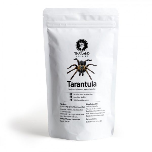 Ingredients: Cooked, dehydrated Haplopelma Albostriatum Tarantula, Salt Brand Name Thailand Unique