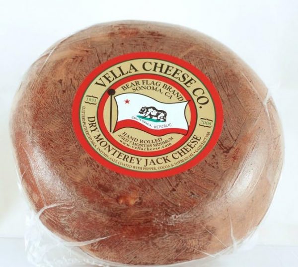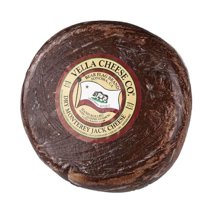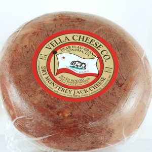 This is an American original with all the character, versatility, and individuality so typical of our country and countrymen! With its sweet, nutty flavor, Vella hints of Parmesan, yet it finishes with a cheddar tang. Made in northern California, the cheese is a handmade Monterey Jack, rubbed with unsweetened cocoa and black pepper, then aged for nearly a year. Unlike most cheese, Dry Jack is aged standing up on its edge, perpendicular to the floor. The wheels have to be hand-rotated regularly throughout the aging process to ensure even moisture and flavor distribution. For 67 years, Vella Cheese has been a companion to great food. Ig Vella says, “The success of Vella Cheese has to lie in the personal attention each day’s production is given. Quality starts in the pasture. Every cow is not the same. Every day is not sunny; every blade of grass is not green and lush. But, if you insist on the finest breeding of herds, the finest feeds, the greatest care in milking and transporting top grade milk, you have the best possible natural raw material, and you have set the stage for outstanding cheese.”